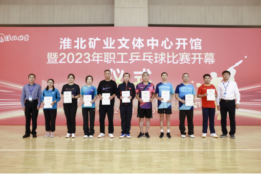 在新落成的文体中心举办“喜迎国庆、‘乒’搏有你”2023年职工乒乓球比赛,经过两天的激烈比拼,决出了男子团体、女子团体、男子单打、女子单打、优秀组织奖等各类奖项,集团工会第一副主席刘杰和工会、物业分公司相关负责人为获奖单位和选手颁奖。