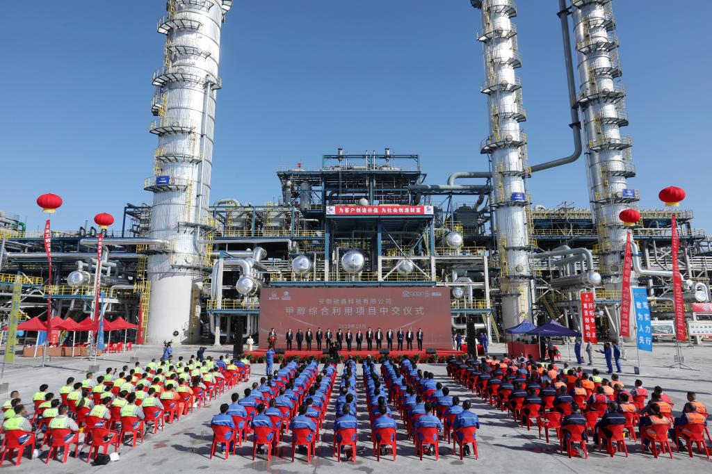 做大做强化工产业的重点项目,建成达产后年产60万吨乙醇。该项目于2021年12月20日动工建设,历时22个月,完成了25项单位工程,气化装置、净化装置、气体分离装置等关键装置按计划施工完成;循环水站、变电所、空压站等公辅工程已正常投入使用。项目正式具备中交条件。