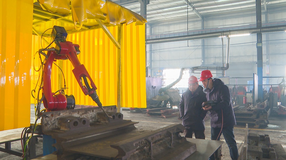 随着一道道指令发出,焊接“机器人”手臂有节奏地翩翩起舞,时而上上下下、时而左左右右。2月18日,记者在祁南矿机厂维修车间看到的一幕。