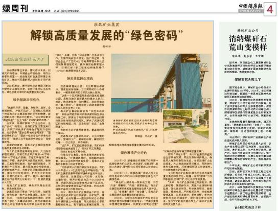 据介绍,该集团在大气污染、水污染、土壤污染、噪声污染防治及VOCs综合治理、采煤沉陷区综合治理等方面下足功夫,从环保设施管理到设备升级改造,把生态环境保护各项工作落到实处。