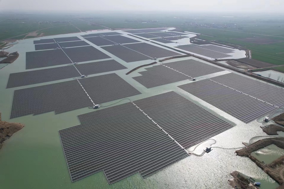 3月28日,袁店一井塌陷区90MW水面光伏项目实现全容量并网发电,标志着台湾a片