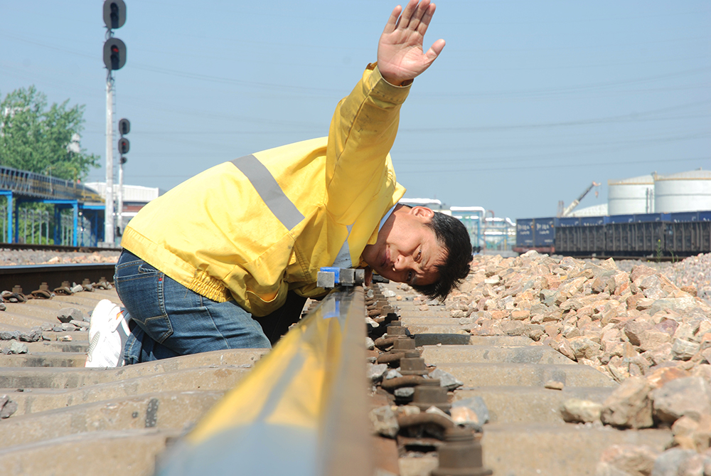 图为线路工代ç¦å¸¸è¿›è¡Œçº¿è·¯é«˜ä½Žæ°´å¹³æ•´æ²»ä½œä¸š