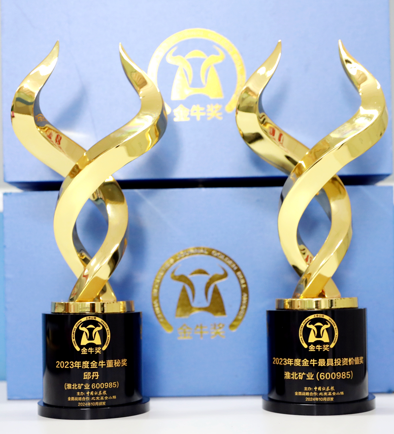 2024年10月24日,由中国证券报与南通市人民政府主办、北京基金小镇全面战略合作的2024上市公司高质量发展论坛暨第二十六届上市公司金牛奖颁奖典礼于江苏南通举行,淮北矿业以稳健提升的治理能力、高质量的信息披露、重视股东回报增进价值等方面的优异表现,荣获“2023年度金牛最具投资价值奖”,公司董事会秘书邱丹荣获“2023年度金牛董秘奖”。