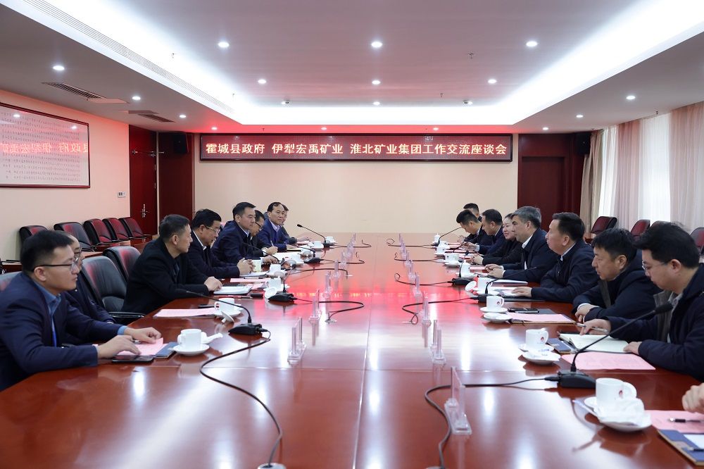 党委副书记、总经理孙方,集团党委常委、淮北矿业副总经理邱丹;霍城县县长艾斯克尔·阿布都维力,霍城县常务副县长刘进财;伊犁宏禹矿业董事长黄莉,以及相关部门负责人等参加座谈会。