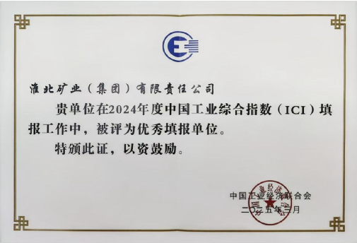 被评为“2024年度中国工业综合指数(ICI)优秀填报单位”,这也是集团公司连续第9年被评为优秀填报单位。