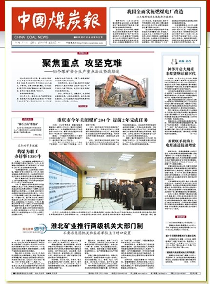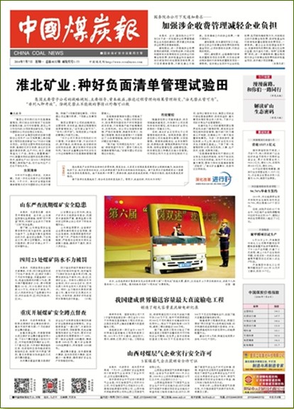 实行负面清单管理入选2014年、推行机关大部制入选2015年煤炭企业十大新闻、2016年获得全国煤炭行业新闻舆论工作先进单位之后获得的又一荣誉。