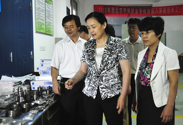 6月17日上午,安徽省总工会副主席李素萍一行,在淮北市总工会主席张香娥、淮北矿业工会主席张宇等陪同下来到淮北煤电技师学院调研指导职工安全培训工作。