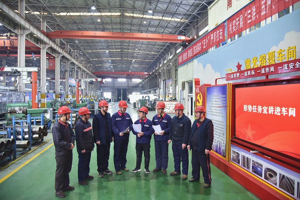 工匠大师、生产装备分公司高级技师王忠才兴奋地和工友们分享着自己参加集团“两会”的感受。他表示,一定要宣传贯彻好集团“两会”精神,发挥自身技能优势,做好“传帮带”工作,大力弘扬工匠精神,培养更多高质量发展所需的技能人才,为打造国内一流双千亿企业作出积极贡献。