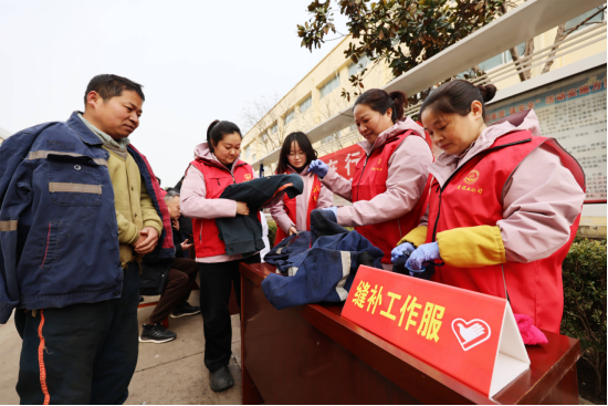 和煦的阳光下,志愿者们身穿红色马甲,分æˆäº”个å°ç»„,在èŒå·¥ç»å¸¸è·¯è¿‡çš„é“è·¯æ—,支起了“摊ä½â€ï¼Œå¼€å§‹äº†â€œç¼è¡¥è¡£ç‰©ã€é…钥匙ã€ç…§è¯ä»¶ç…§ã€åˆ·è½¦ã€é‡è¡€åŽ‹â€ç‰å¤šç§ä¾¿æ°‘æœåŠ¡æ´»åŠ¨ã€�