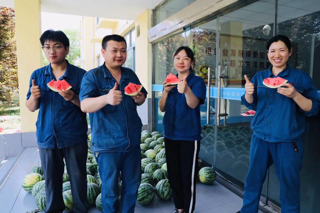 该厂将采购的6000斤新鲜西瓜第一时间送到生产一线车间、班组和职工的手上,确保夏季职工的身心健康,实现安全生产。“这瓜又大又甜,感谢厂里给我们送西瓜、送清凉!”“吃在嘴里、甜在心里,感觉浑身都凉爽,工作起来也特别带劲!”大家不时竖起拇指夸赞着,喜悦之情溢于脸上。(撰稿:石启元 审核:杜燕)