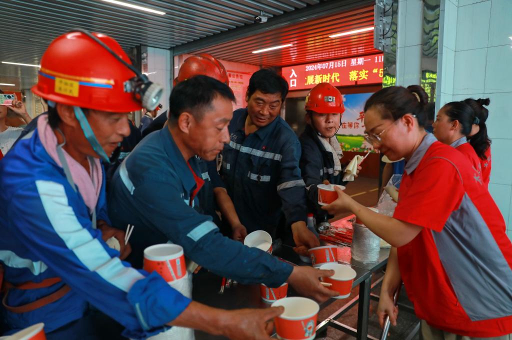 7æœ�15日,入ä¼ç¬¬ä¸€å¤©ï¼Œä¸´æ¶£çŸ¿åœ¨å‰¯äº•å£å’ŒèŒå·¥é£Ÿå ‚开展慰问活动,å…è´¹æä¾›ç¾Šè‚‰æ±¤ï¼Œå¹²éƒ¨èŒå·¥åƒç¾Šè‚‰ã€å–羊汤,大汗淋漓间,带走了冬春之毒,驱散了黄梅天的阴湿,感å—到“舌尖上的幸ç¦â€ã€�