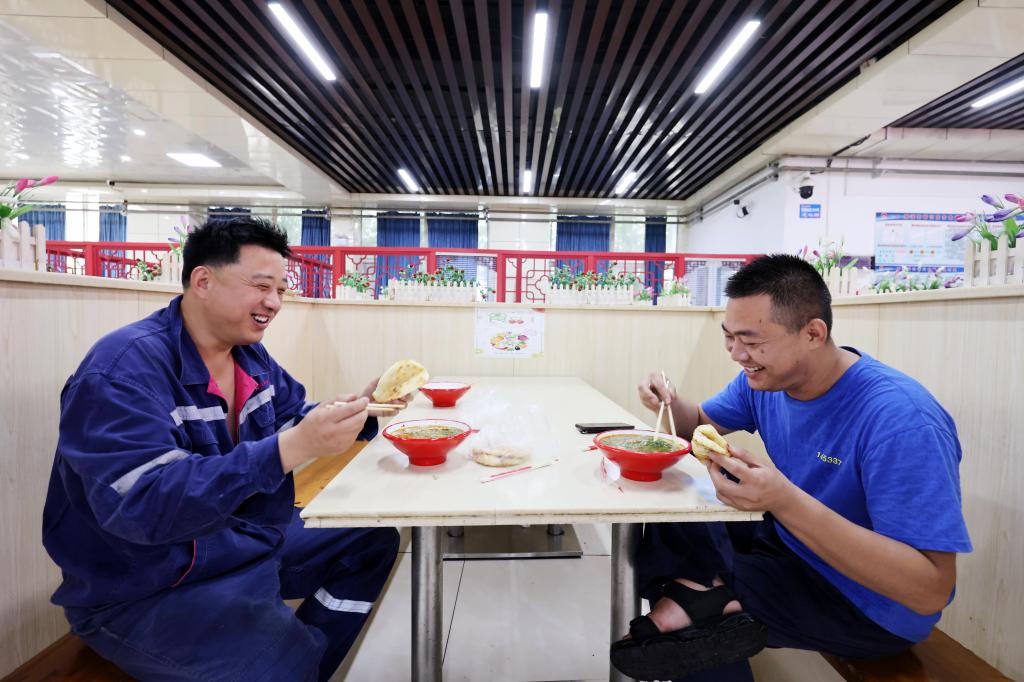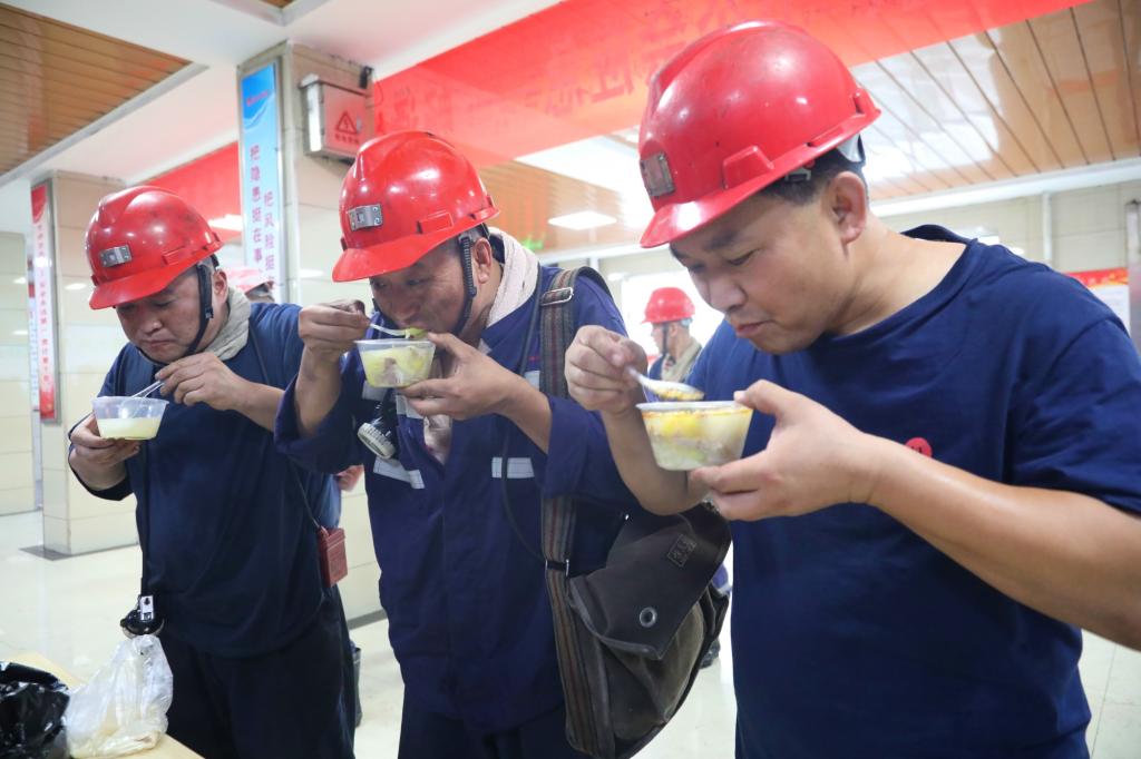 7æœ�15日,入ä¼ç¬¬ä¸€å¤©ï¼Œå™ç–ƒçŸ¿å—北两个èŒå·¥é¤åŽ…é‡Œï¼Œç©ºæ°”ä¸é£˜è¡ç€æµ“浓的羊肉醇香,上ä¸ç的矿工师傅早已排起长长的队ä¼ï¼Œç‰å¾…ç€äº«ç”¨å…费羊肉汤ã€�
