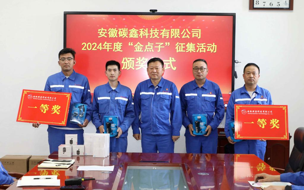 “下面将颁发一等奖,请‘一、二期合成气管道连通技术改造’‘迁车台加装一套液压插销装置’等5支技术团队上台领奖......”7月23日,碳鑫科技公司一楼调度会议室内掌声雷动,该公司为期2个多月的“金点子”征集活动正式落下帷幕,来自基层车间的45支技术团队接受公司颁奖。