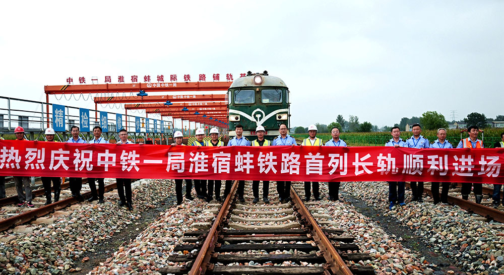 9月18日,伴随着机车的鸣笛声,铁运处9522号机车牵引着一列满载长轨的运输专列顺利抵达淮宿蚌城际铁路铺轨基地。长轨单根500米长,50根共计1500吨。此次长轨运输任务的顺利完成标志着该处运输组织水平再上新台阶。