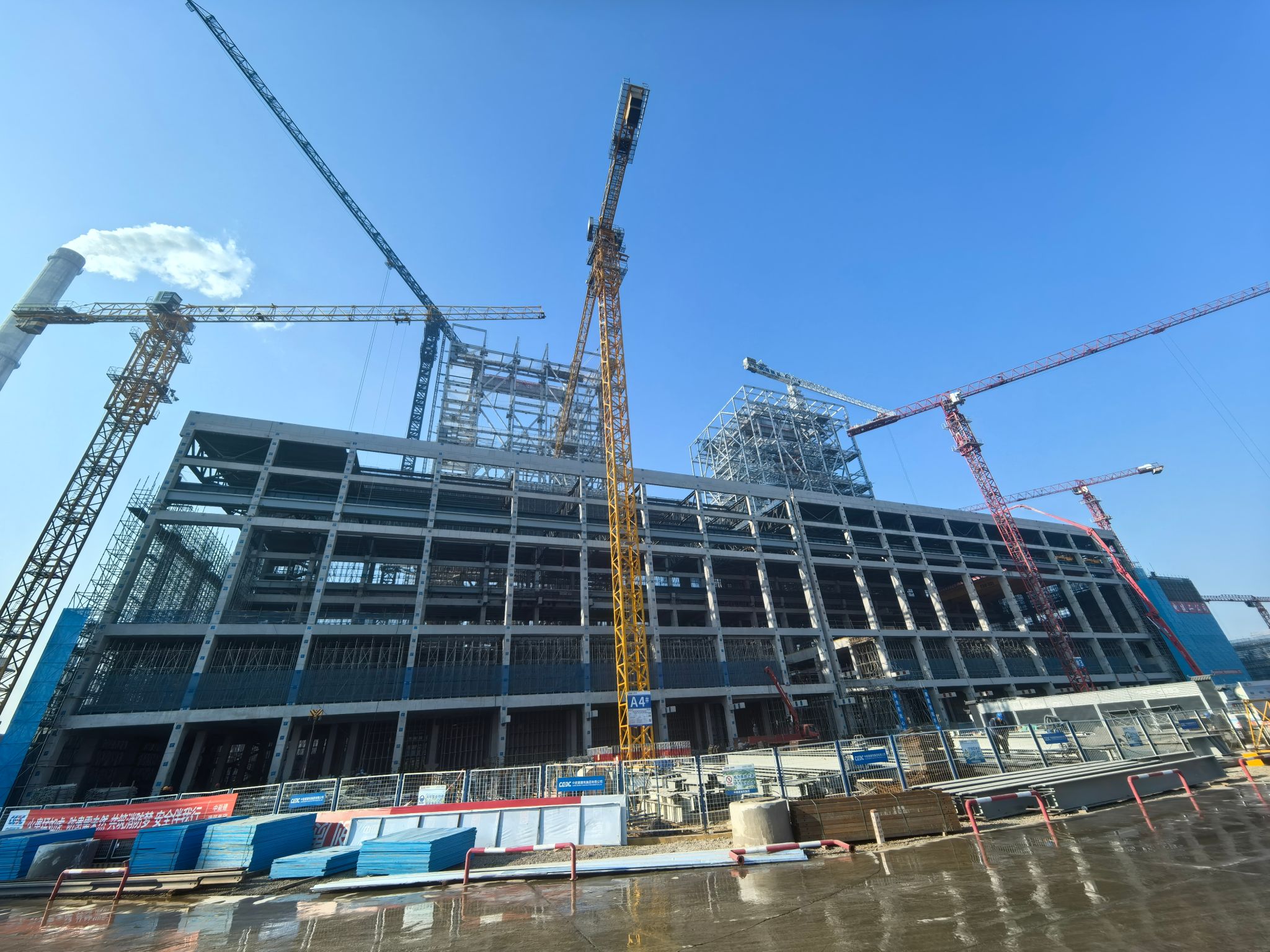 2025年1月1日,正值元旦佳节,早上7点,淮北聚能发电有限公司2×660MW超超临界机组工程项目建设现场已是机声隆隆。运输车进进出出,大型机械开足马力作业,现场一派热火朝天的景象。
