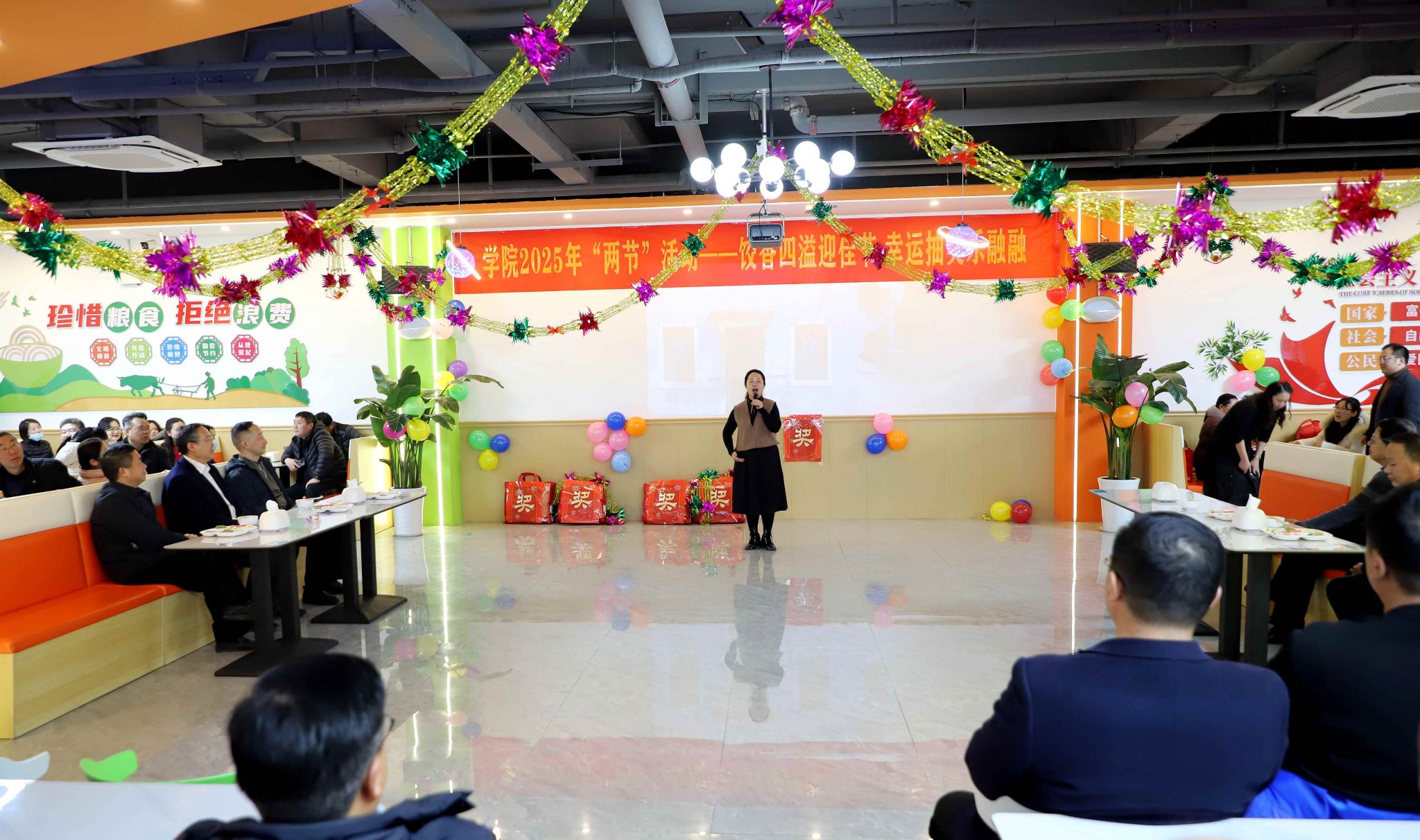 校园南食堂流光溢彩、乐声荡漾,彩带、气球、电子屏装饰一新,洋溢着节日温馨的气氛。上午8时半, 别开生面的腊八节包饺子及抽奖活动拉开序幕,吸引众多教职工热情参与,为寒冷冬日增添融融暖意。