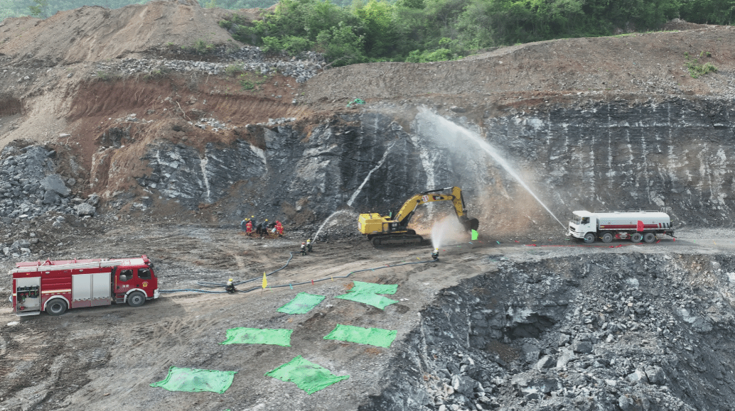 演练模拟无为市某月以来受降雨影响,突发恶劣天气导致华塑采矿作业区域边坡坍塌,引发人员被困、车辆、机械倾覆、火灾等事故情景。全程严格按照险情确认、初期处置、预案启动、应急自救等程序展开,参演人员紧张有序、快速响应,在通力配合下,历经一个小时,圆满完成任务,达到预期效果。