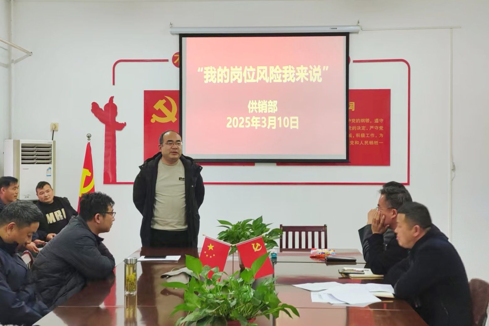 为创新安全活动模式,供销部收集并整理各班组不同岗位的危险源,大力开展“我的岗位风险我来说 我的应急措施我会用”隐患辨识活动。激励职工积极参与危险源排查和隐患治理,针对自身所在岗位提出改进建议,提升班组成员危险源辨识能力。