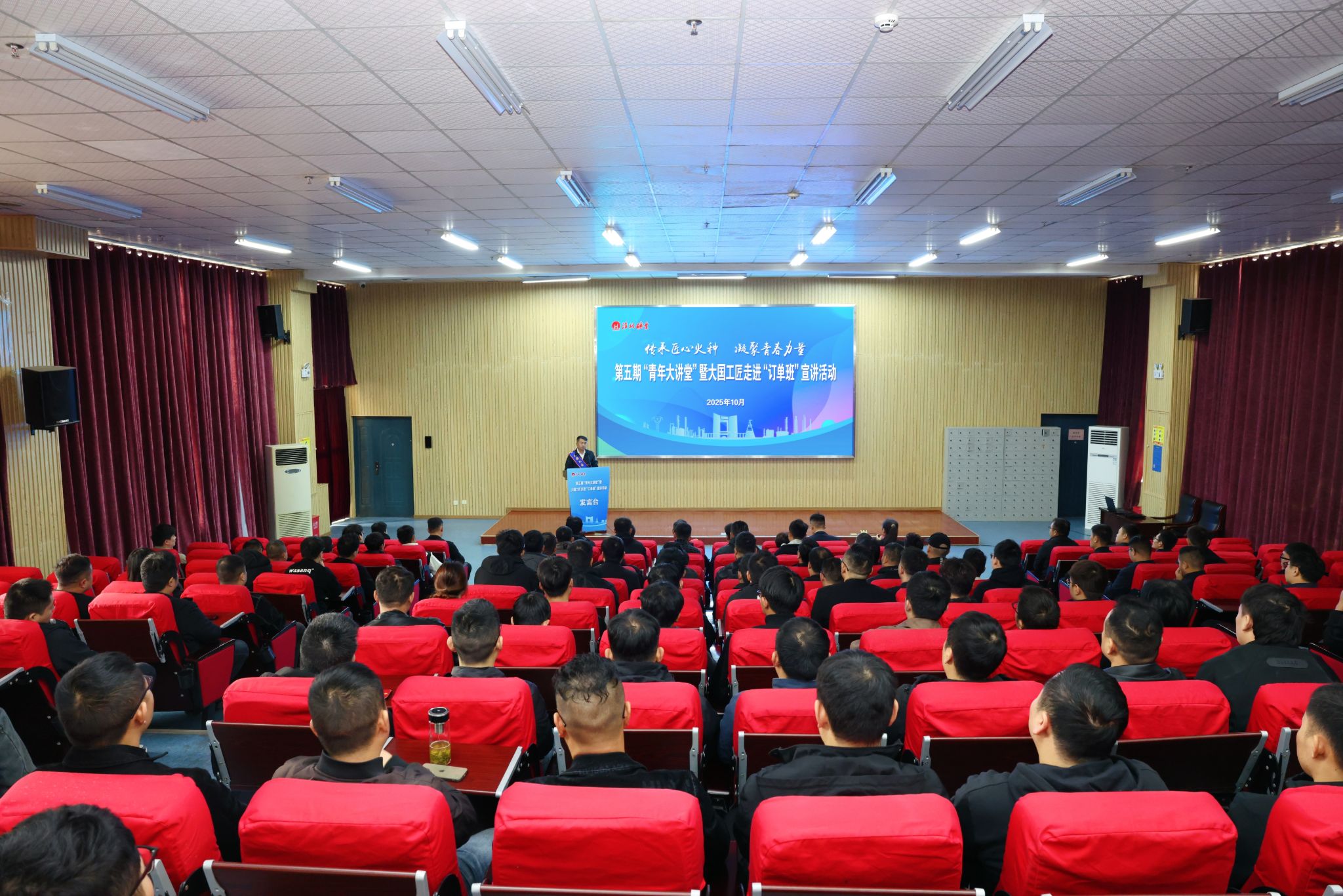 举办第五期“青年大讲堂”暨大国工匠走进“订单班”宣讲活动,大国工匠王忠才、全国劳动模范杨庆受邀作专题宣讲,激励青年职工立足岗位、锤炼本领,走稳技能成才、技能报企之路。部分单位近三年“订单班”青工代表参加活动。