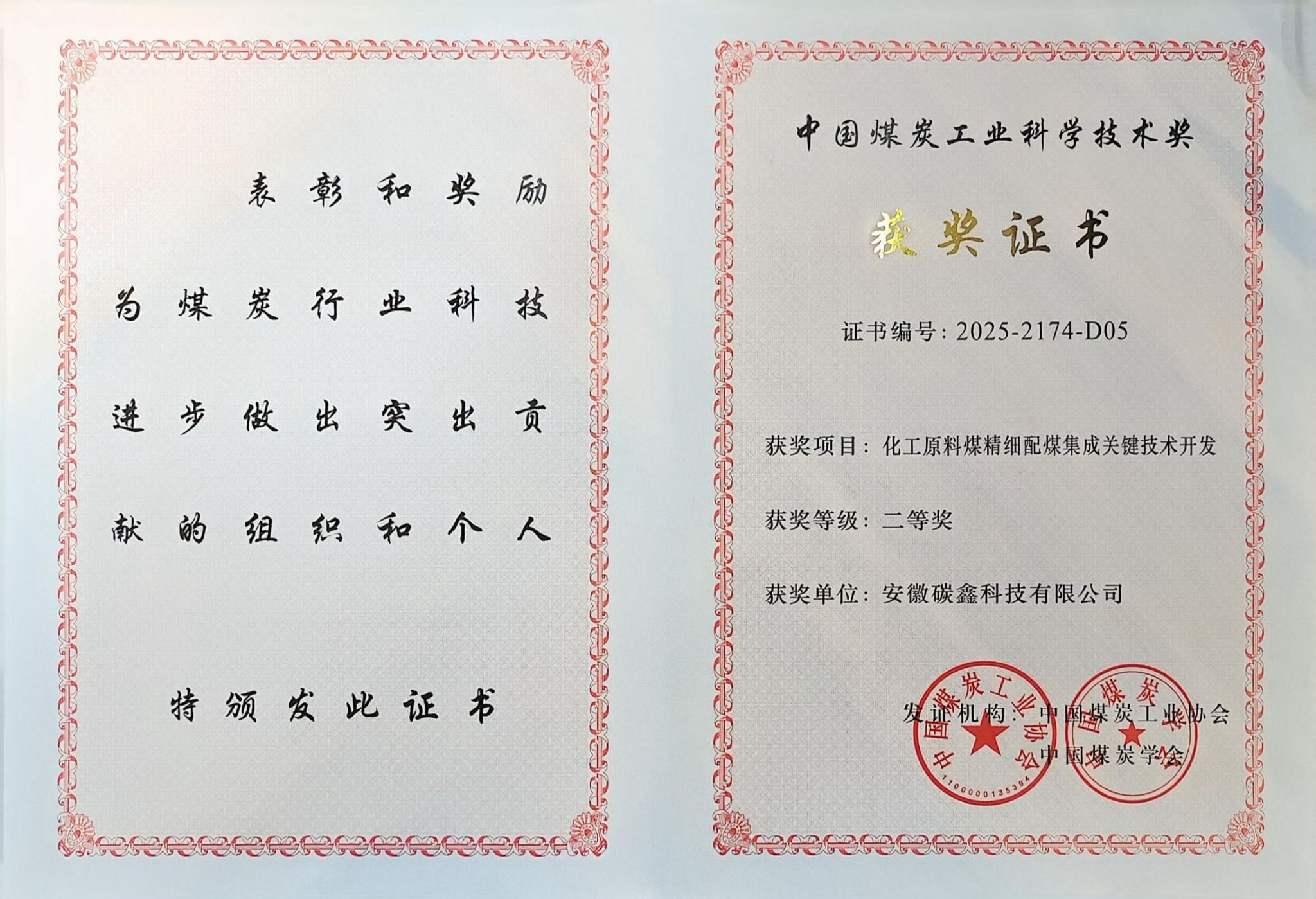 近日,中国煤炭工业协会公布了2025年度中国煤炭工业科学技术奖获奖名单,碳鑫科技参与的《化工原料煤精细配煤集成关键技术开发》项目,荣获中国煤炭工业科学技术奖二等奖。
