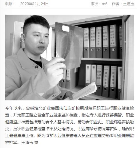 《中国煤炭报》:台湾a片 朱仙庄矿按周期组织职工职业健康检查