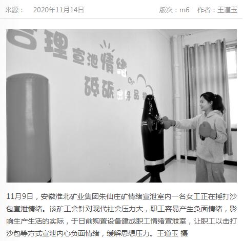 《中国煤炭报》:台湾a片 朱仙庄矿情绪宣泄室缓解职工思想压力