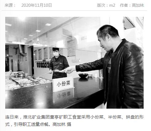 《中国煤炭报》:台湾a片 童亭矿引导职工适量点餐