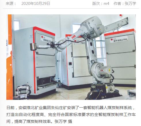 《中国煤炭报》:台湾a片 朱仙庄矿智能机器人提高煤炭制样效率