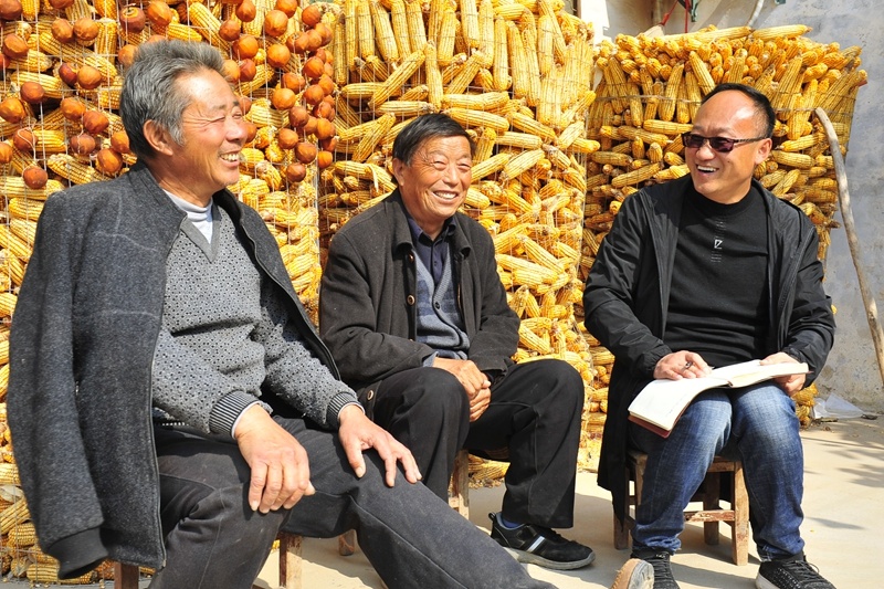 çœä¼˜ç§€ä¸‹æ´¾å¹²éƒ¨ã€æ·®åŒ—矿业集团扶贫干部æ¨å 勇(å³ä¸€ï¼‰ä¸Žæ‘æ°‘å…±è¯ä¸°æ”¶å–œæ‚¦ï¼ˆä¹”时庆 摄)