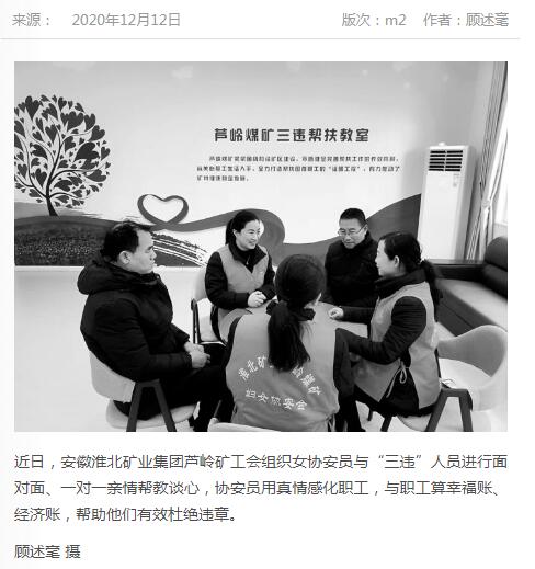 《中国煤炭报》:台湾a片 芦岭矿工会“三违”帮教助安全