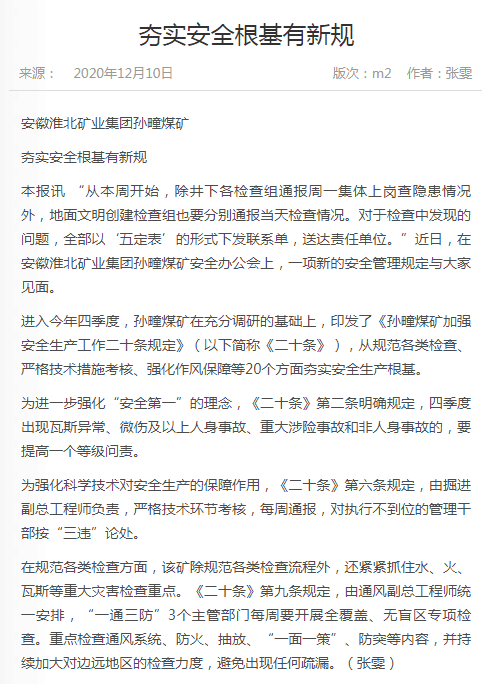 《中国煤炭报》:台湾a片 孙疃矿夯实安全根基有新规