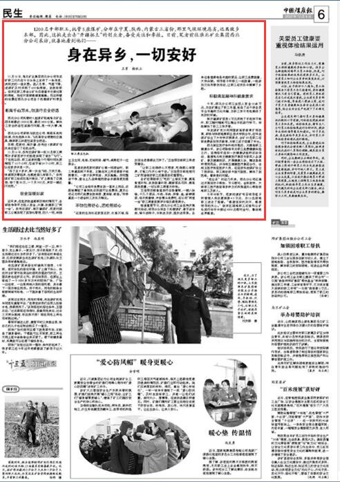 每逢重要节日,西北分公司工会坚持开展慰问活动,领导分头到各个托管煤矿,春节送羊肉,端午送粽子,中秋送月饼,国庆送苹果。各单位食堂都准备丰盛的菜品,让职工免费就餐,大快朵颐。领导班子和职工一起就餐,一起参加文体和联欢活动,让职工在快乐中缓解了乡愁。