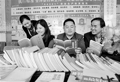 ▲重学习 安徽淮北矿业朱仙庄矿为基层单位设置职工书柜,并根据职工喜好,定期在各单位之间开展换书活动。 王道玉 摄