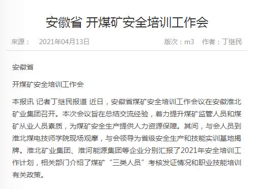 《中国煤炭报》:安徽省开煤矿安全培训工作会
