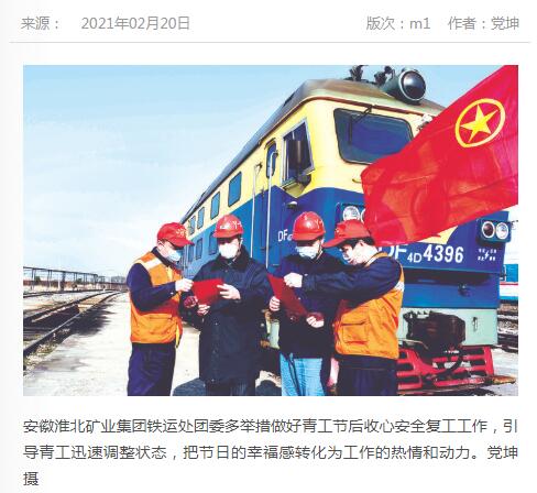 《中国煤炭报》:台湾a片 铁运处做好青工节后收心安全复工工作