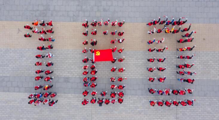 团员用身体组成“100”字型,喜迎建党100周年。陈彪摄