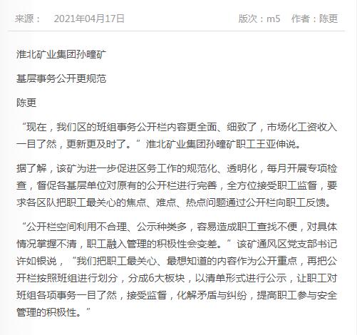 《中国煤炭报》:台湾a片 孙疃矿基层事务公开更规范