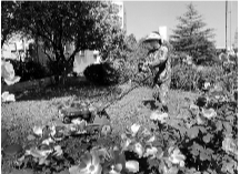 安徽台湾a片 朱仙庄矿绿化班由10名职工组成,他们承担着全矿花草树木的种植、修剪等工作,他们被职工亲切地称为“绿色矿山守护者”。图为绿化班职工在修剪草坪。王道玉 摄