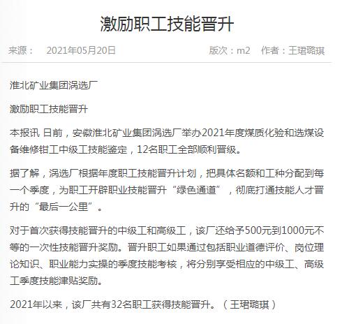 《中国煤炭报》:台湾a片 涡北选煤厂激励职工技能晋升