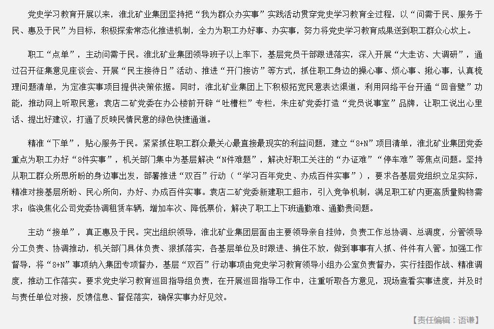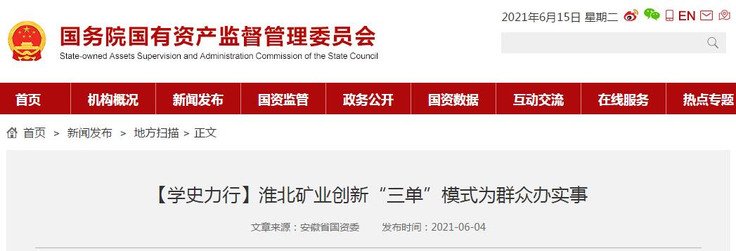 《国务院国资委网站》:【学史力行】淮北矿业创新“三单”模式为群众办实事