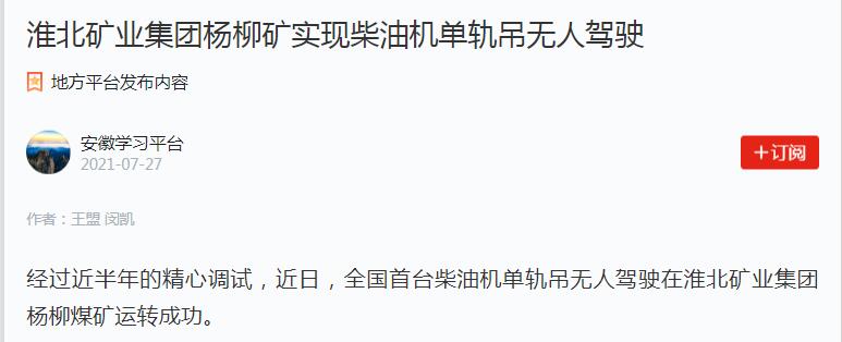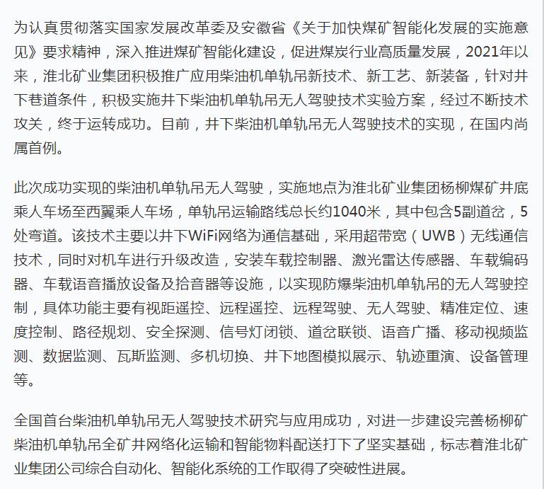 《学习强国》:台湾a片 杨柳矿实现柴油机单轨吊无人驾驶
