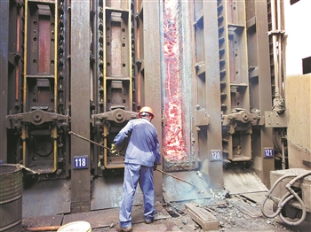 图为7月12日,一名出炉工冒着高温进行出焦作业。魏玉东 摄