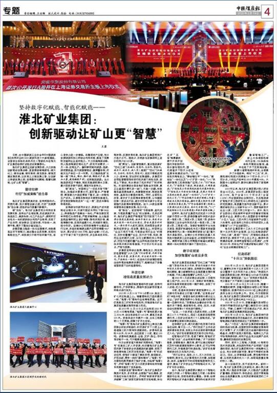 累计建成35个智能化采煤工作面、6个智能化掘进工作面、2条盾构掘进作业线,实现电液控全覆盖。信湖、杨柳两对智能化矿井基本建成,雷鸣科化被评为安徽省智能工厂。新上40条巷修机械化作业线、136条柴油单轨吊辅助运输线,基本杜绝了井下无极绳运输。新建11套智能选矸系统,全面提升了分选效率。相比“十二五”末,采、掘机械化程度分别提高3.4个百分点、37.3个百分点,人均生产效率比2015年提高48%。大数据中心挂牌运行,数字化建设取得了里程碑式进展。