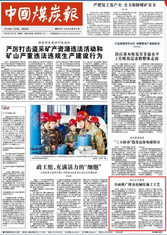 1月25日,该集团在神源煤化工公司召开煤仓机械化现场会,全面推广应用煤仓机械化施工技术。会议指出,煤仓机械化施工工艺技术先进、安全可靠、成仓快速、支护质优、经济节约,在国内处于领先水平。