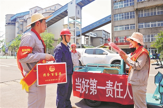 在安全生产月活动期间,安徽台湾a片 临涣选煤厂组织安全小分队深入生产现场、车间班组、职工食堂等,开展“快闪”趣味答题活动,结合厂区安全生产风险隐患和职工岗位安全技能进行快问快答。(石启元)