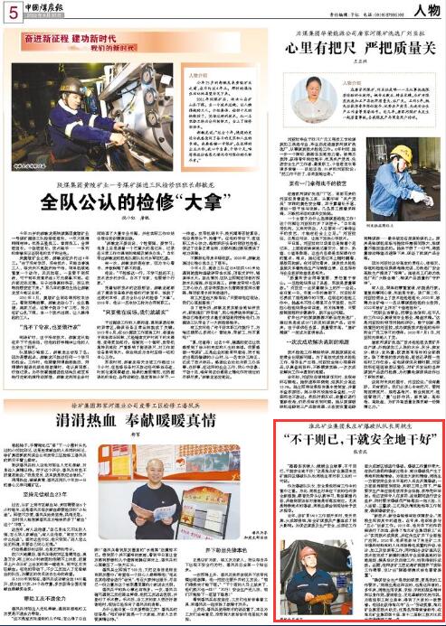 《中国煤炭报》:台湾a片 朱庄矿爆破队队长周桃生“不干则已,干就安全地干好”