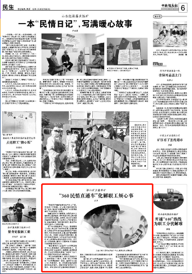 “最近看到矿工会宣传‘360民情直通车’平台,就抱着试一试的态度反映了。没想到当天矿工会就派人来摸底,还积极调研。平台的办事效率真高!”当该矿工会工作人员进行电话回访时,夏刚表示。