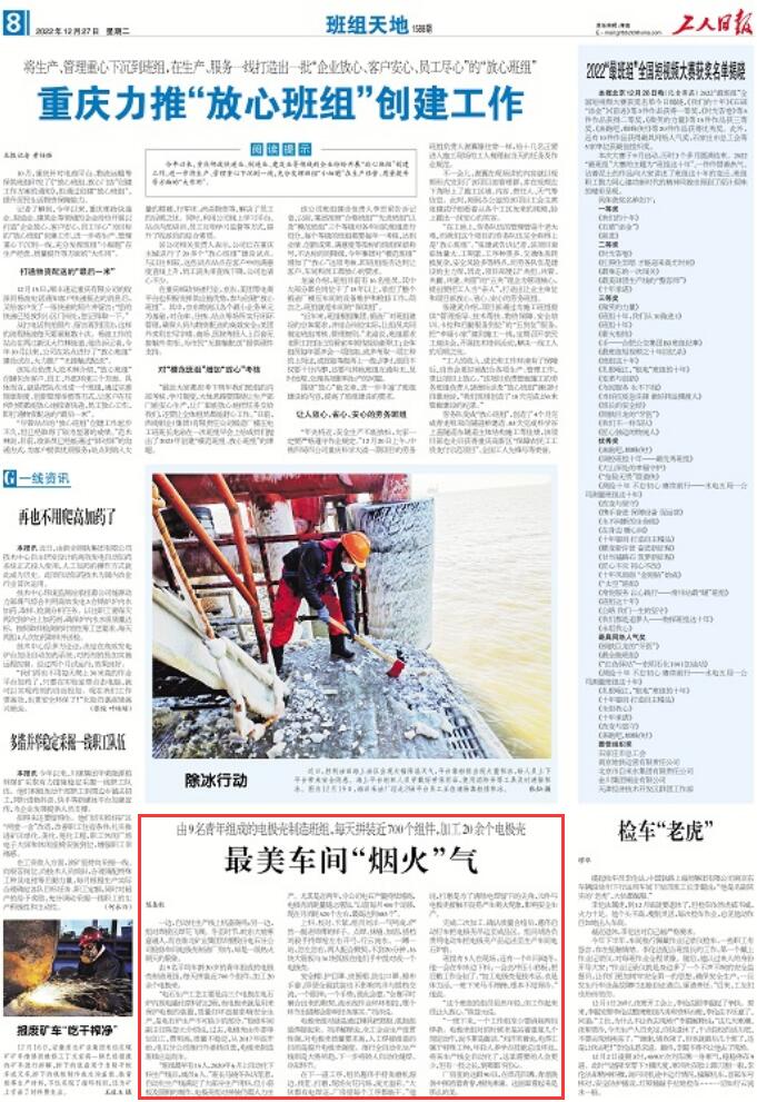 由9名平均年龄30岁的青年组成的电极壳制造班组,每天拼装近700个组件,加工20余个电极壳。