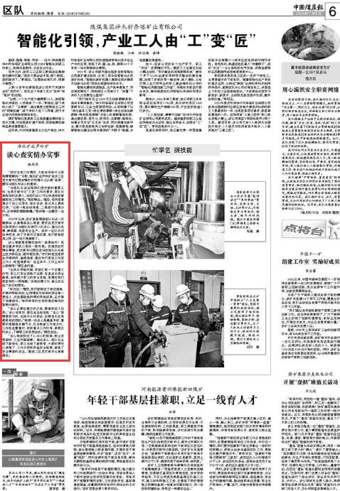 “谈心制度拉近了心与心的距离,既让思想破冰,又让问题破解。通过谈心,班队长出现了新变化,职工也有了新转变,大家的责任心更强了,工作中积极排查安全隐患,避免了安全事故的发生。”掘进二区党支部书记商磊磊说。(徐燕萍)