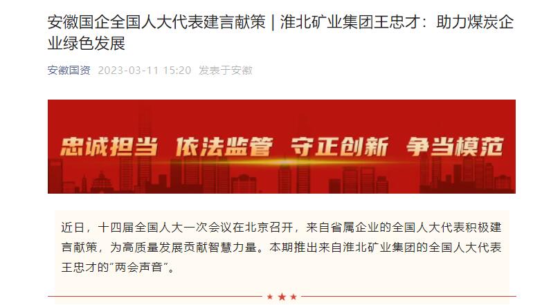 《安徽国资》:安徽国企全国人大代表建言献策 | 台湾a片 王忠才:助力煤炭企业绿色发展
